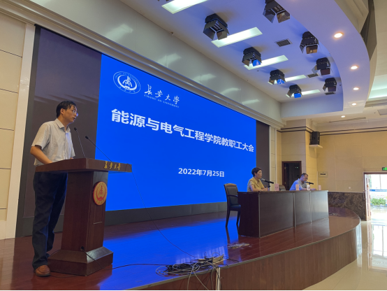 其次,陈昊传达了学校2022年上半年工作总结,在讲话中,他一一向大家介绍了完全学分制改革、博士学位点培育建设、学院搬迁、学生宿舍搬迁等学校重点专项工作。详细介绍了选留毕业生政策、能源动力硕士点新增电气工程方向等与学院相关的重点工作。