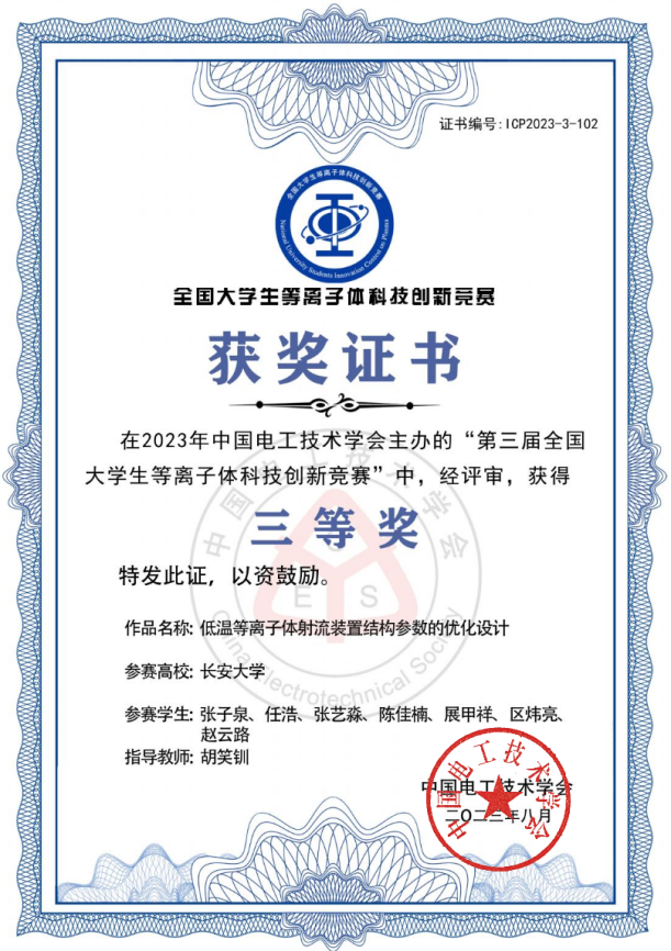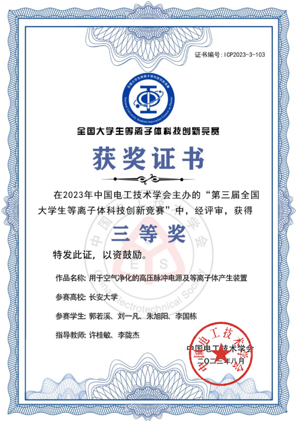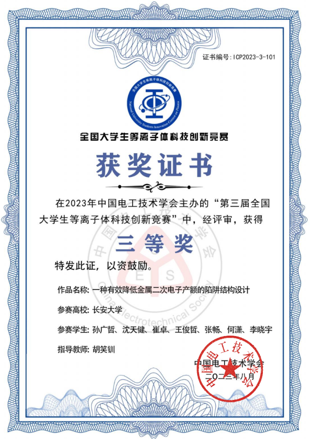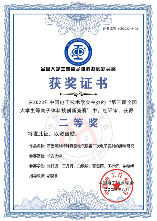 由中国电工技术学会主办的第三届全国大学生等离子体科技创新竞赛决赛于2023年8月在武汉顺利举办。竞赛自2023年4月20日启动以来,共收到全国90余所高校和科研院所的350多件参赛作品。经过严格的网络评审,共遴选出140件作品进入决赛。bat365在线中国官网登录入口学生刘样溪、张子泉、孙广哲等人在胡笑钏、许桂敏老师的指导下,经过严格的网络评审、现场评审和答辩评审环节,最终斩获全国二等奖1项、三等奖3项。