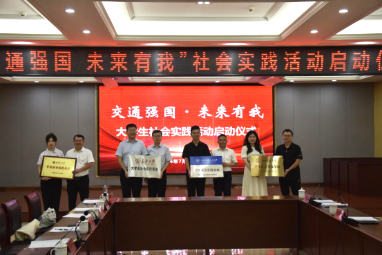 7月4日,长安大学、北京航空航天大学、同济大学、西南交通大学、武汉理工大学、山东交通学院6所交通强国建设试点高校在交通运输部对口支援县江西安远县召开“交通强国 未来有我”暑期社会实践活动启动仪式。安远县委副书记、副县长杨建刚出席仪式,我校bat365在线中国官网登录入口党委副书记李文,bat365在线中国官网登录入口团委书记金振广,bat365在线中国官网登录入口团委副书记彭阳和6名学生代表参加仪式。