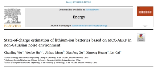 我院电气工程及其自动化系巫春玲副教授以第一作者身份在能源领域顶级期刊《Energy》上发表了题目为《State-of-charge estimation of lithium-ion batteries based on MCC-AEKF in non-Gaussian noise environment》的学术论文,论文第一署名单位为长安大学。