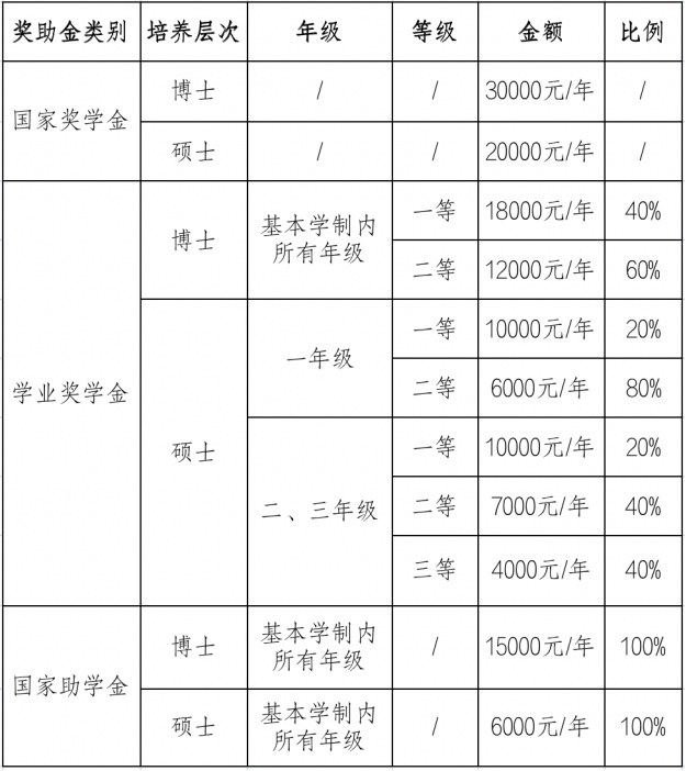 参照《长安大学研究生奖助体系实施办法》《长安大学研究生国家奖学金管理办法》《长安大学研究生学业奖学金管理办法》《bat365在线中国官网登录入口研究生奖学金评选实施办法(修订)》等文件执行。奖助政策覆盖学制内所有年级,所有学生。