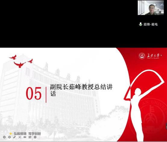 交流结束后,学院副院长茹峰对四位参与分享的同学日常学习工作给予肯定,并针对班级建设进行归纳总结,提出三点要求。他强调,一是,bat365在线中国官网登录入口作为新成立的学院,在工作开展中面临种种考验,班级建设是一项需要长期坚持,任重道远的工作,一个好的班级是每一位同学共同努力的成果,班委应做好模范带头作用建设“和谐互助”班级;二是,我校仍在进行封闭管理,疫情防控刻不容缓,保持良好心态,加强疫情防控意识;三是,作为大三年级课程学业繁重,即将面临升学就业的工作压力,各位同学应该及时调整好心态,端正学习态度,学好专业知识,为将来做好准备。