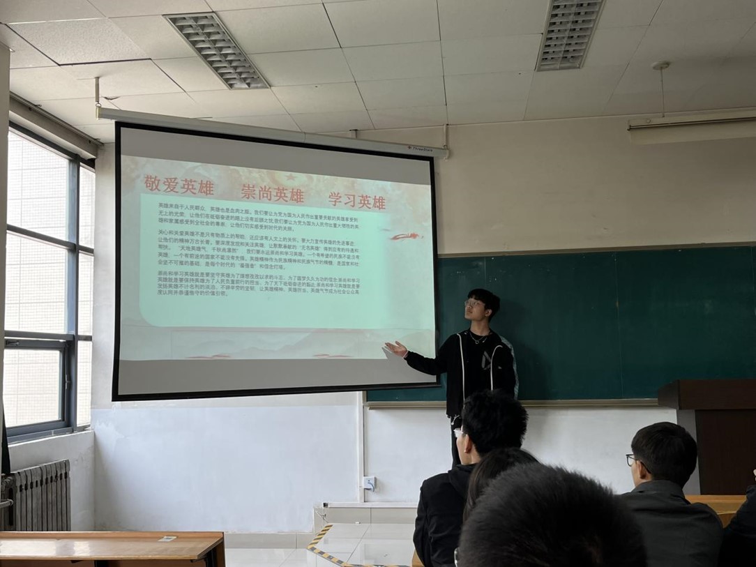 会议第一项内容,由高志飞从敬爱英雄、崇尚英雄、学习英雄三个角度出发,鼓励同学们从物质和人文上关怀、关注和宣传英雄,并强调学习和推崇英雄精神对自身理想信念、对社会价值引领的重要性。