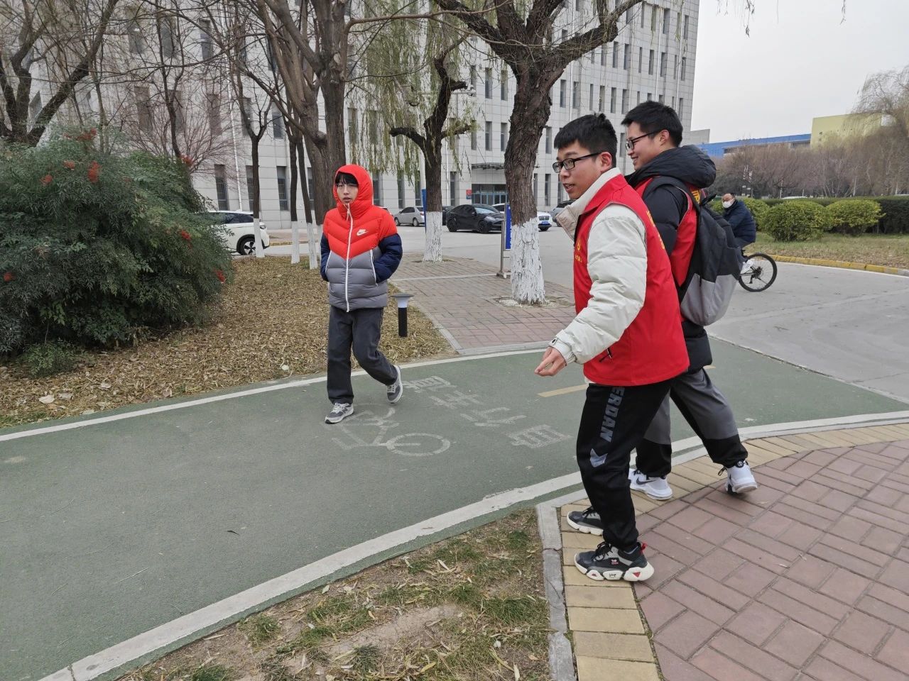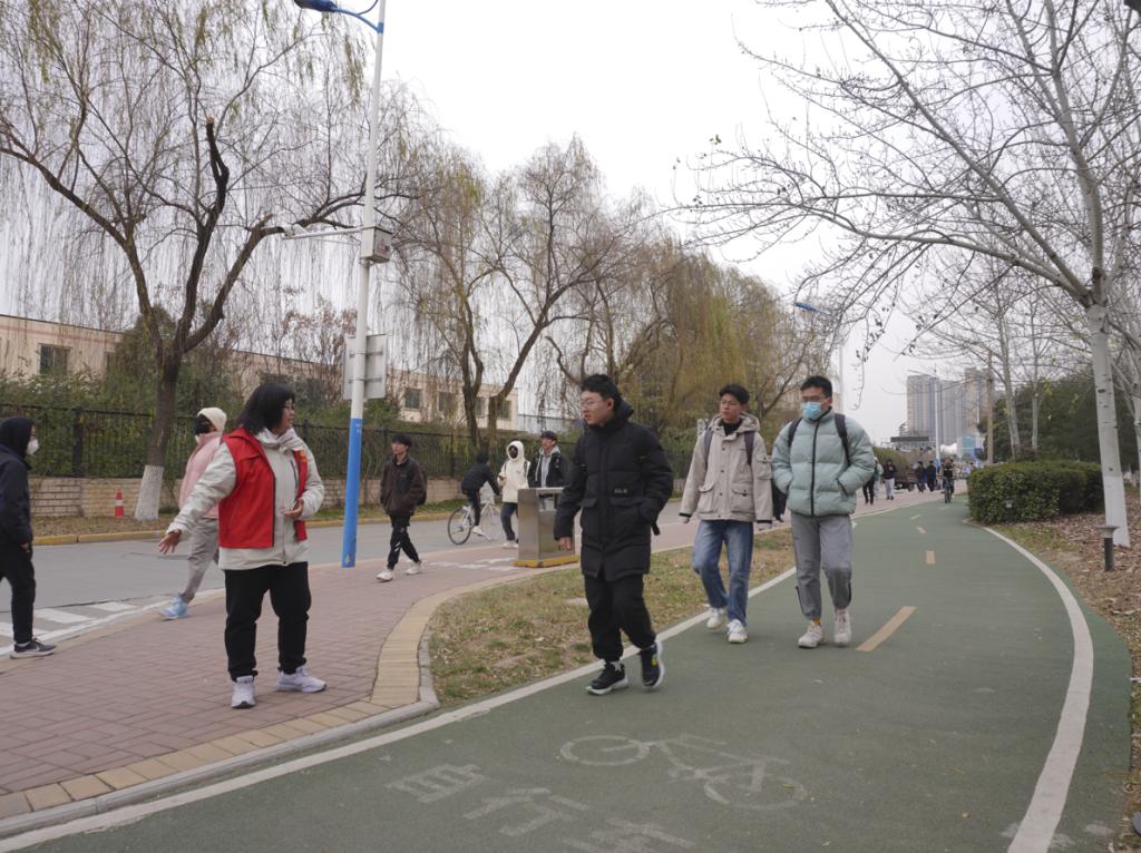 在活动过程中,各位bat365在线中国官网登录入口青年志愿者坚守岗位,在问远路中段上下课人流量大的时间,进行交通安全常识宣传,引导学校师生养成安全交通行为。阵阵的寒风吹不灭志愿者们心中为同学们服务的热情之火。经过志愿者们的提醒和引导,同学们积极配合,规范行走在人行道上,不占据自行车道并且规范停车,为校园的文明、安全做出自己的贡献。同学们的理解和尊重,让大家一次次感到温暖和感动,更感到不虚此行。