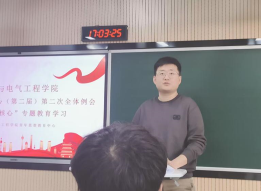 11月22日中午,bat365在线中国官网登录入口大学生科技创新创业协会在学院612会议室召开专题学习暨全体例会。能电科协指导老师金振广出席本次会议,能电科协全体成员共同参加。科协指导老师金振广,总结了前段时间的主要工作内容,对大家前期的工作提出了表扬。最后他着重强调要加强组织成员对“坚强核心”专题的政治理论的学习。本次例会的成功召开,总结了科协前期工作的得与失,为科协顺利开展后期的工作打下了坚实的基础。并加强了成员们关于“坚强核心”专题的学习,做好了成员们的思想政治引领,让成员们不断紧跟党的步伐。