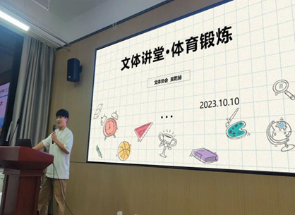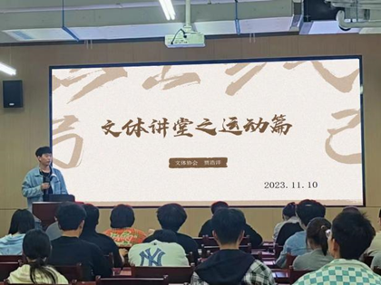 为了激发学生的体育兴趣,促进身心健康,bat365在线中国官网登录入口文体协会举办了“文体讲堂”系列活动,为同学传播科学锻炼、安全运动的知识,吸引了众多同学的积极参与。
