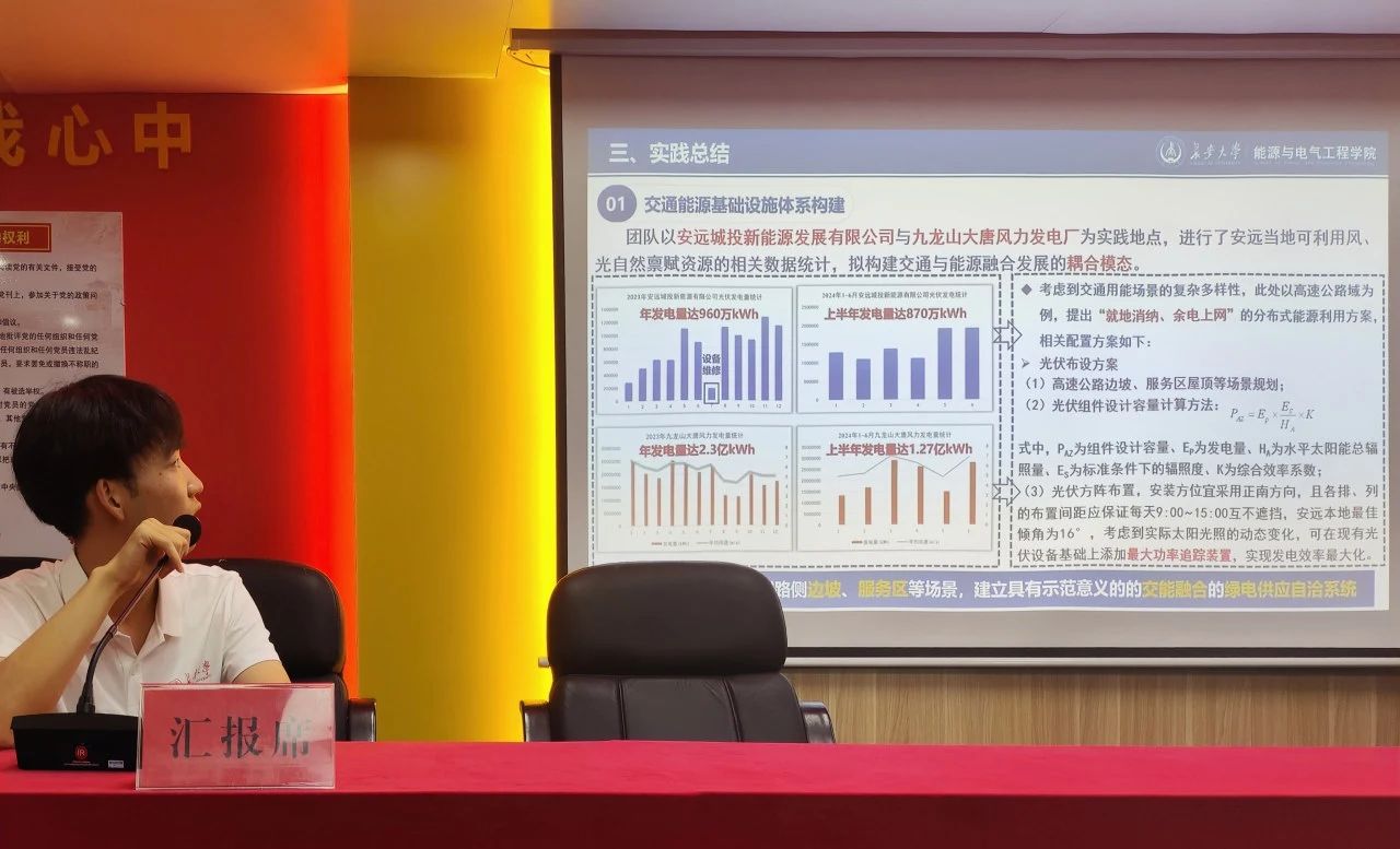 面对全球气候变化的严峻挑战,绿色能源的应用与推广成为实现可持续发展的必由之路。结合实践选题与安远县充电设施的现状和发展需求,实践队成员将视野拓展至清洁能源的多元化应用与前瞻性布局中。通过深入走访、实地调研、专家座谈等方式,走进安远县国家电网汽车充电站、城投光伏发电园区、江西大唐国际新能源有限公司九龙山风电场等新能源企业,与相关负责人探讨风能和光能等可再生能源的经济价值和投资潜力。通过采集充电桩和企业新能源设备产电数据、分析安远县电动汽车充电站选址布局的关键因素等充分调研的基础上,实践队提出了“交能融合”的创新方案。指出企业可以充分利用自然资源,建立具有示范意义的的交能融合的绿电供应自洽系统。同时,强调了提高能源转换效率和储能能力的重要性,以确保企业与科技前沿同步发展。